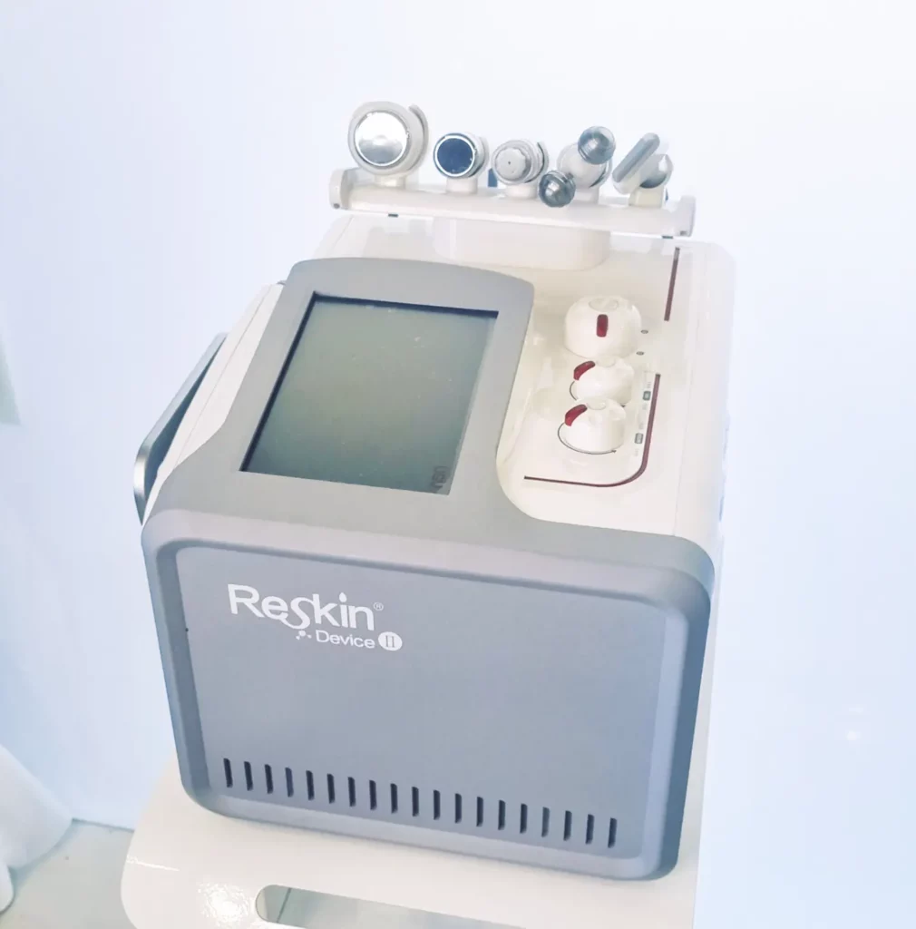 Detoksykacja i dogłębne oczyszczenie skóry. Reskin II wykorzystuje technologię wodoru, aby skutecznie usuwać wolne rodniki i toksyny, pozostawiając skórę świeżą, nawilżoną i promienną.
