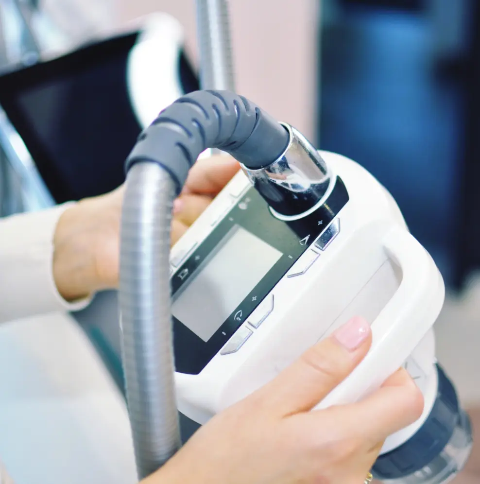 - Multipolarna fala radiowa (MPRF) – dociera zarówno do powierzchniowych, jak i głębszych warstw skóry, poprawiając jej jędrność i stymulując produkcję kolagenu. System monitorowania temperatury tkanek w czasie rzeczywistym zapewnia bezpieczne podgrzewanie skóry, co przyspiesza regenerację i redukcję tkanki tłuszczowej.